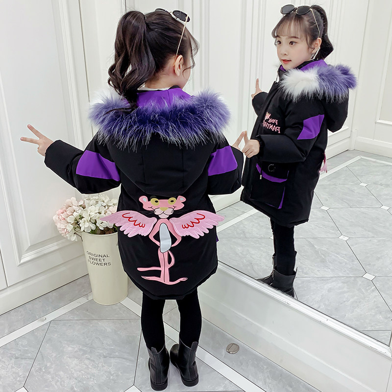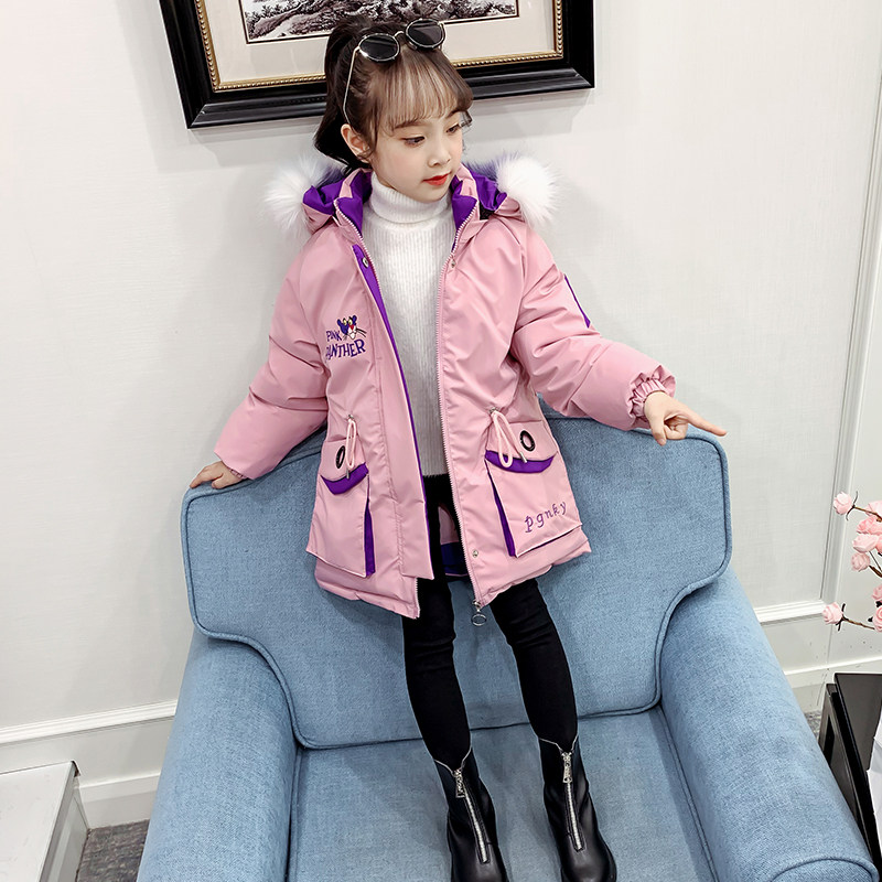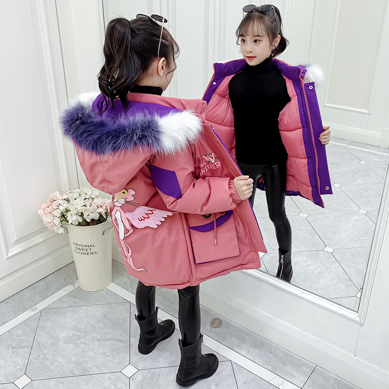 Girls cotton padded clothes 2022 winter new foreign style girls net red big children Korean fashion mid-length thick padded clothes tide