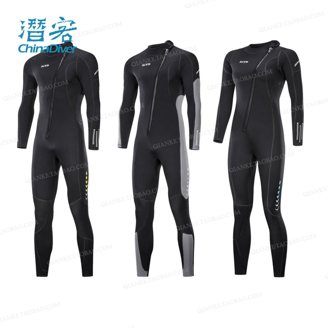 ZCCO wetsuit men's warm front zipper one-piece surf thickening large size cold-proof gel coat women's full body wetsuit 3mm