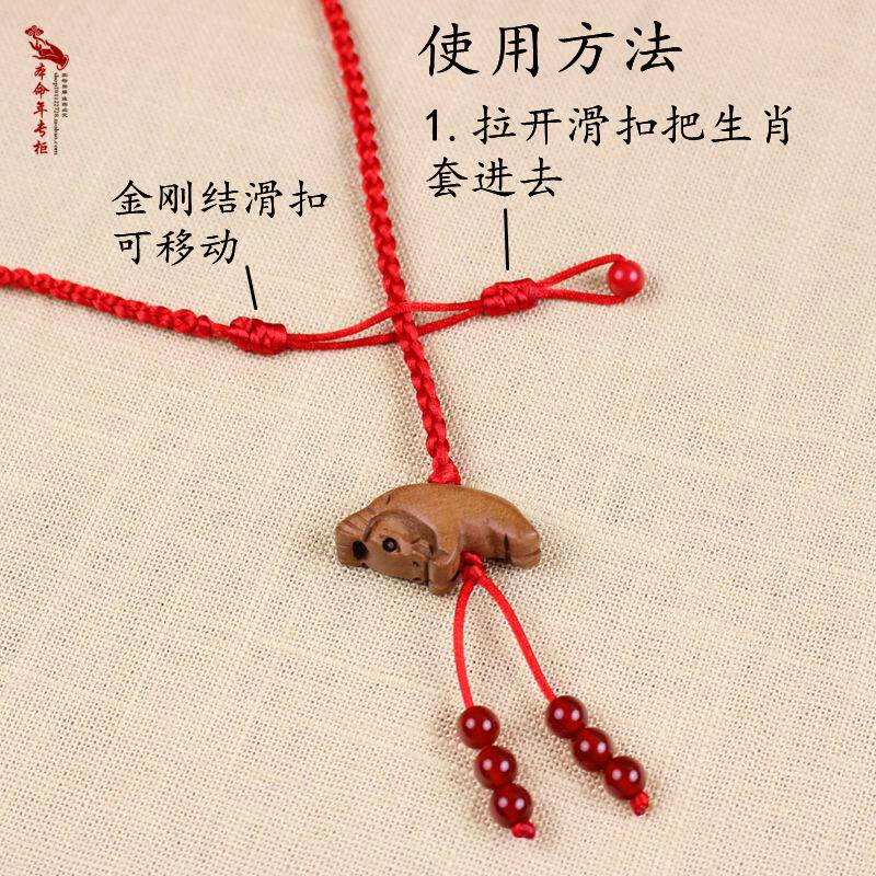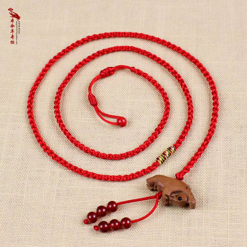 Natural peach wood carving twelve zodiac ox birth year red waist chain hand-woven red rope belt waist rope for men and women