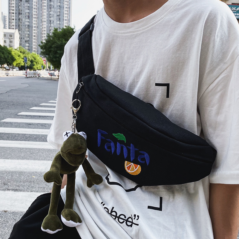 Chest bag men's trendy brand ins super hot casual shoulder bag Messenger bag trendy canvas small bag Japanese waist bag boy's shoulder bag