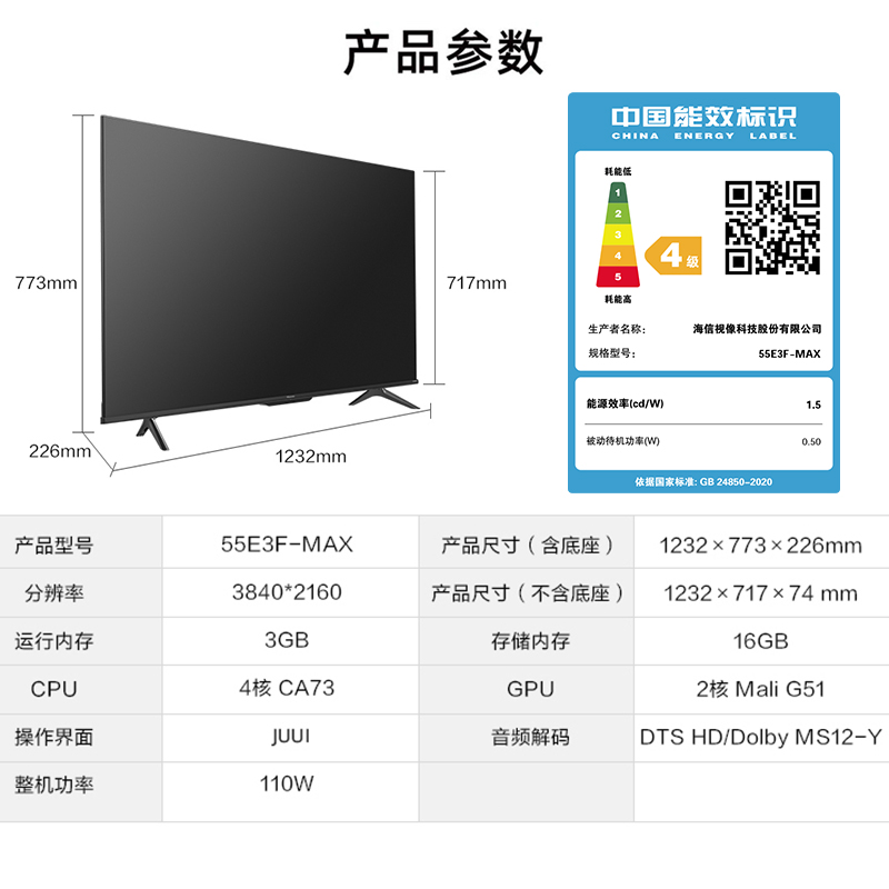 Hisense 55E3F-MAX 55 inch 4K smart full screen TV smart network HD flat panel LCD 65