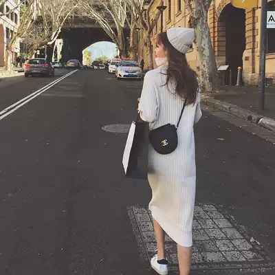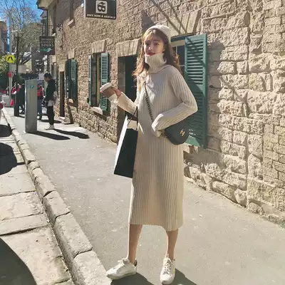 Loose inner sweater women 2021 new autumn and winter Korean version of long version lazy wind over the knee knitted dress tide