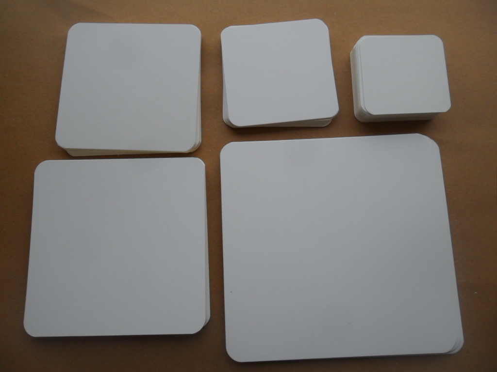 6 * 6 cm 200 white cards 8 * 8 cm 150 white cards 10 * 10 cm 100 white cards 12 * 12 cm 80 white cards 15 * 15