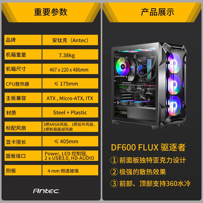 Antec Antiq Expulsion DF600 FLUX AP Side Transparent Host Case Desktop Host Case