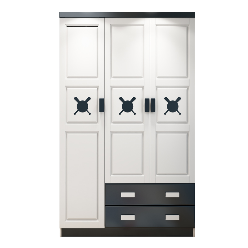 Water-based paint solid wood children's wardrobe Teenage boy bedroom storage cabinet suite girl three-door casement wardrobe