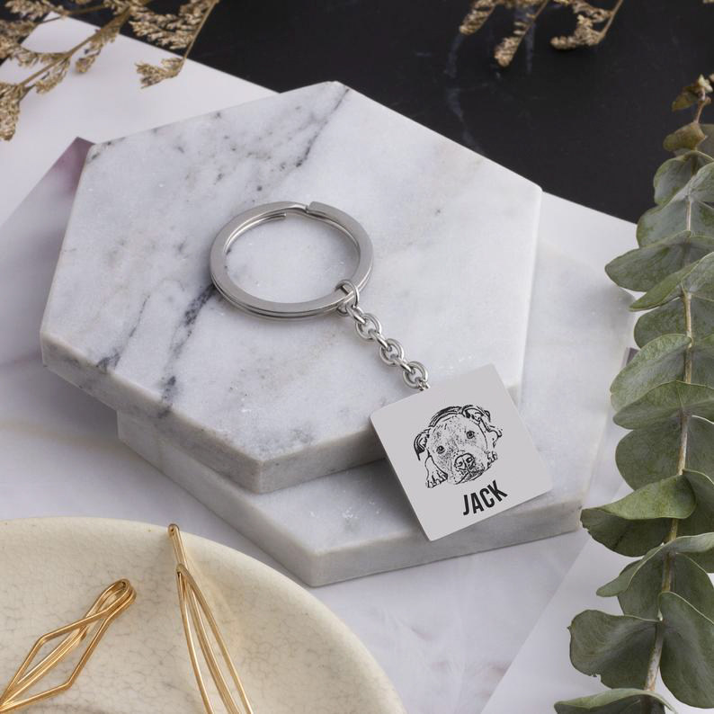 Ins style pet cat and dog avatar photo diy keychain to map custom engraved name cute car bag square pendant