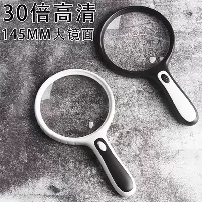 High power handheld magnifying glass 30 with LED light HD elderly reading elderly children students Science 20 maintenance extended mirror 100 special 1000 portable 60 German high multiple national process
