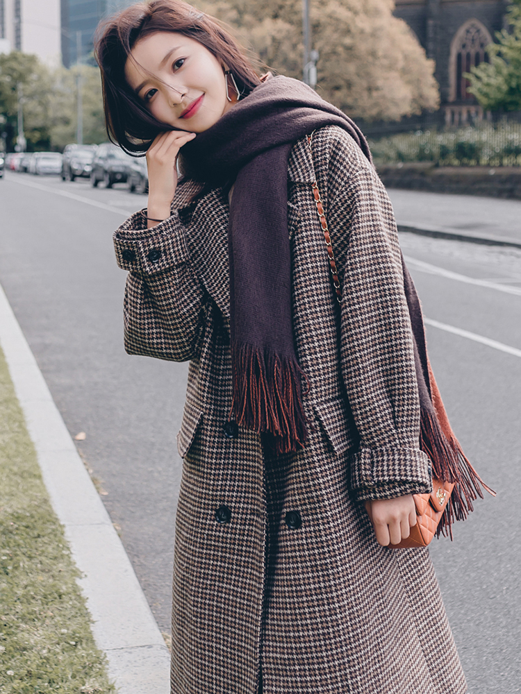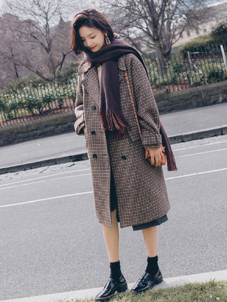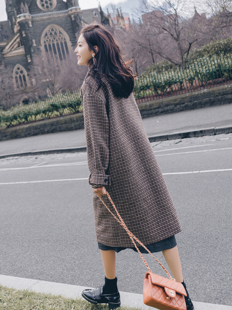 Lecea Alice Fur Coats Women's 2023 Winter New Loose Retro Long checkered ladies-Taobao