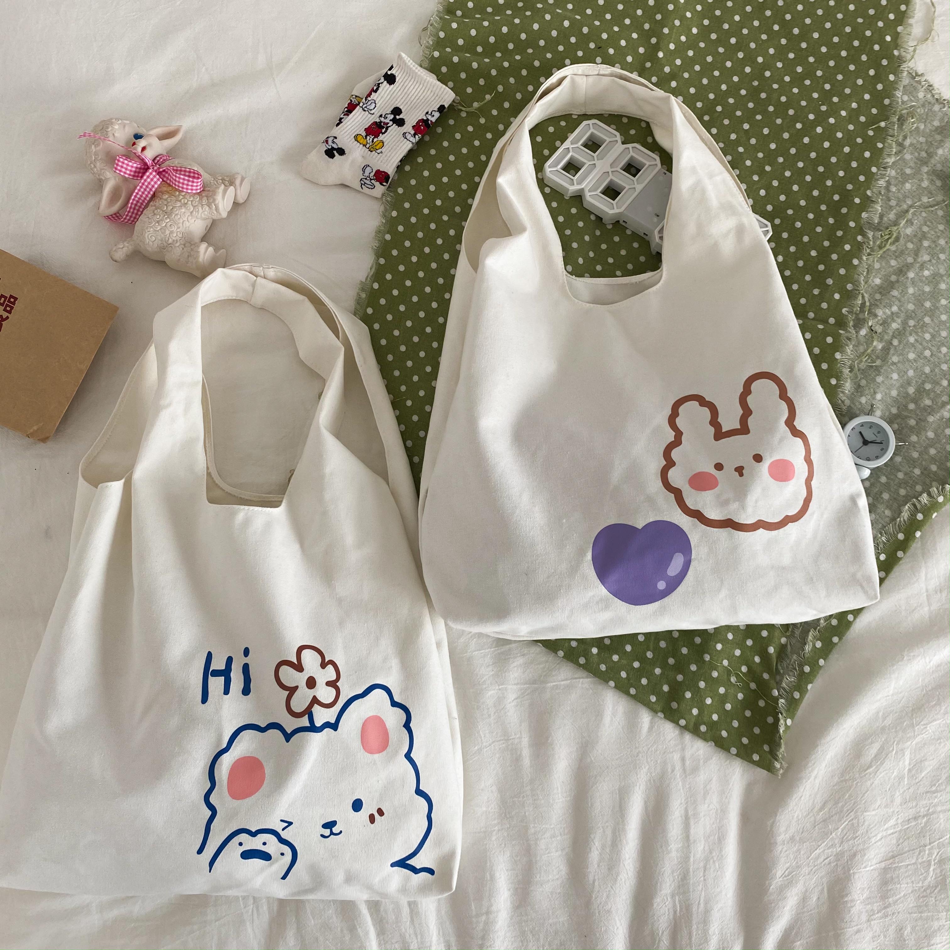 Environmental protection canvas shopping bag fashion 100 lap large capacity cloth art pocket cute cartoon Japan-ROK hand carrying single shoulder woman bag