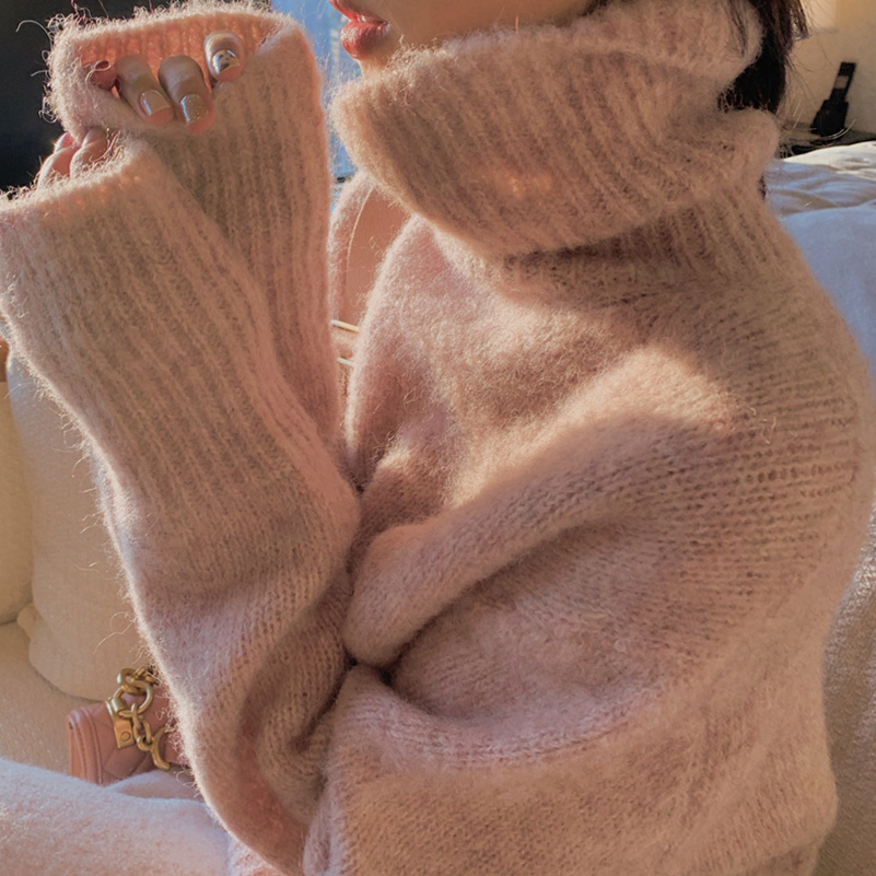 Lazy Breeze Pink high collar Fairy coat woman autumn winter 2020 new loose outside wearing knitted jacket head blouses-Taobao