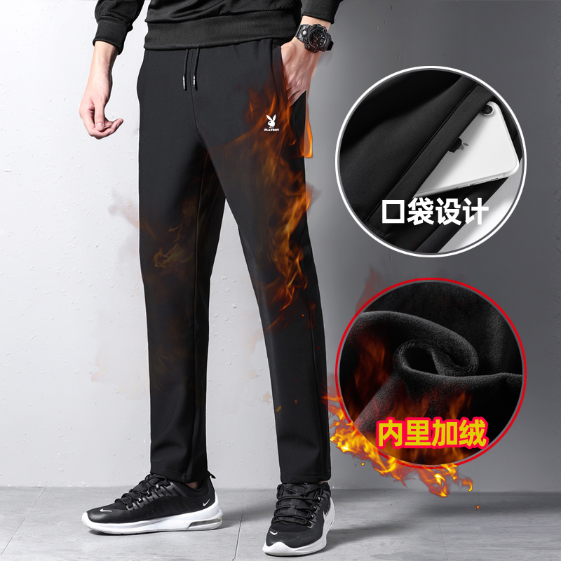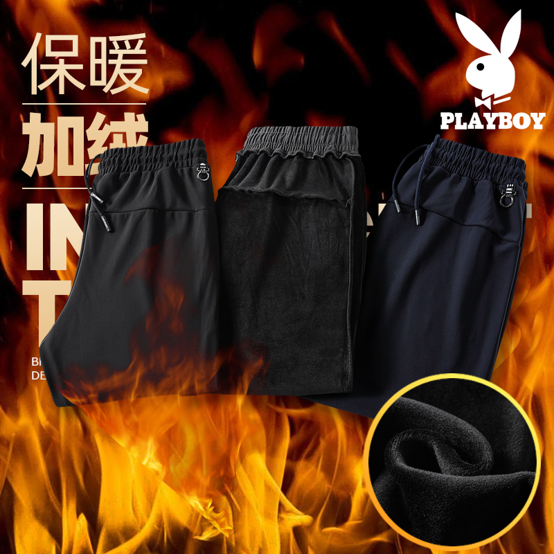 Playboy 2020 new autumn and winter casual men's long pants Korean version of ice silk beam feet plus velvet thickened large size