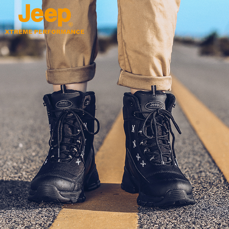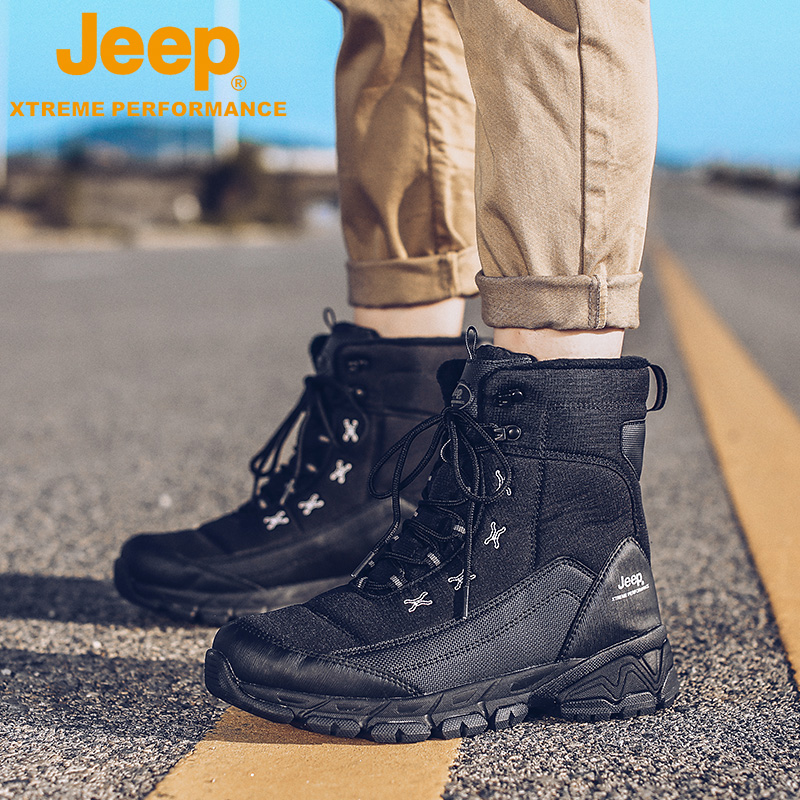 Jeep Northeast Snowy Boots Winter Warm Men's Big Cotton Shoes Plus Suede Thickened Waterproof Anti-Slip High Cylinder Boots Man
