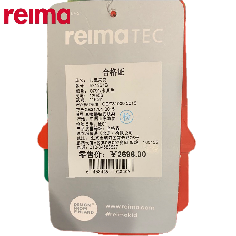 Reima boy ski suit Denied water anti-stain windproof winter jacket jacket warm cotton suit 531361B