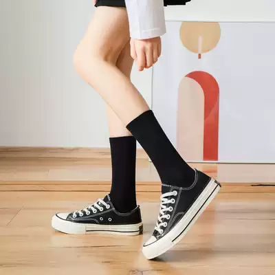 Enjoy it black socks women's middle tube pure cotton socks spring and autumn thin high barrel pile stockings, JK calf socks