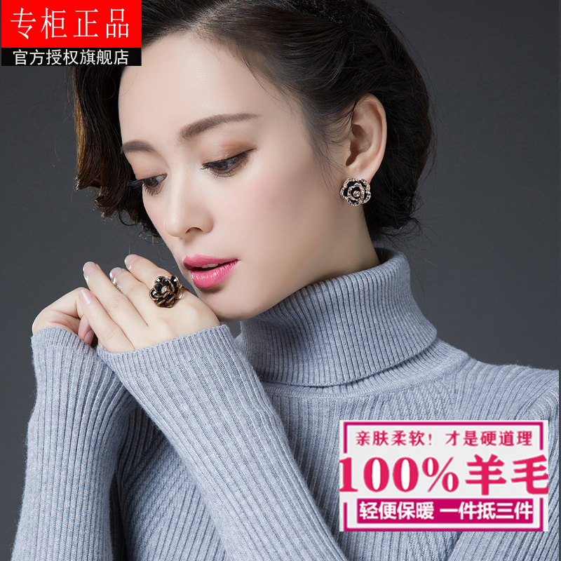 Cardigan Women 100% Pure Wool Black White Slim Short Turtleneck Sweater with Cashmere base shirt Women Autumn and Winter