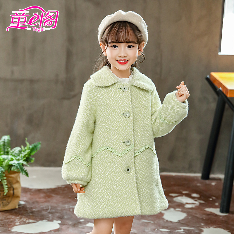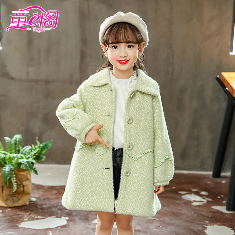 Girls' cotton wool coat New children's thick autumn and winter clothes in the foreign atmosphere of the big children plus fleece tweed coat