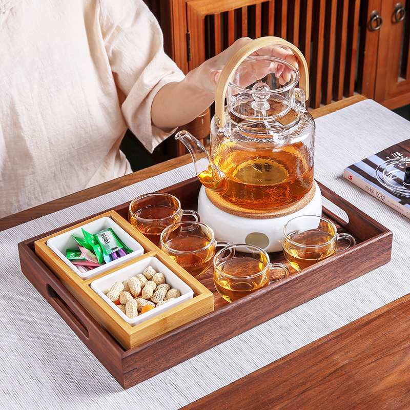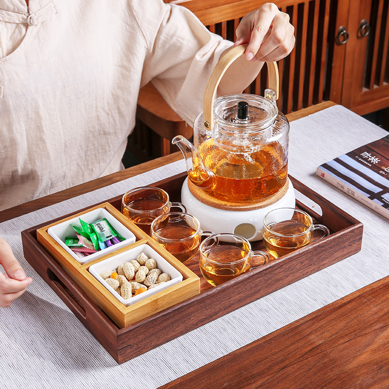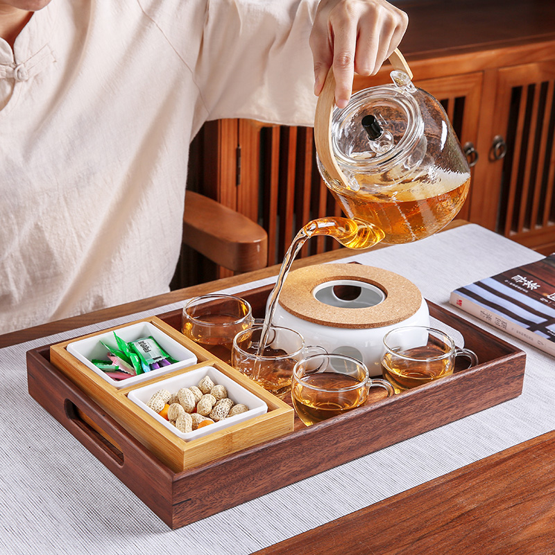 1000ML bamboo beam pot + 4 cups + base + bamboo rectangular tray + (50 candles)