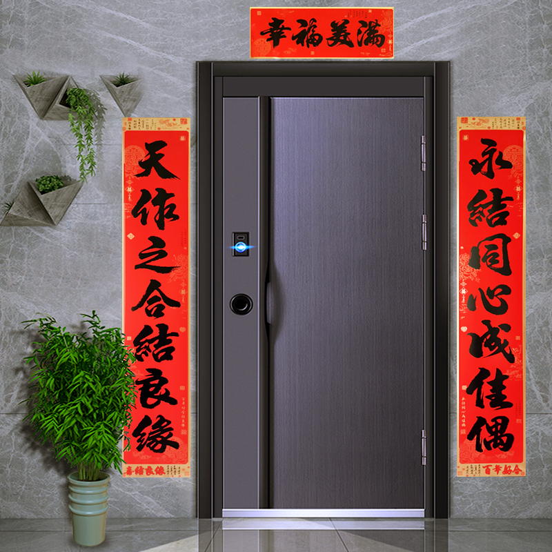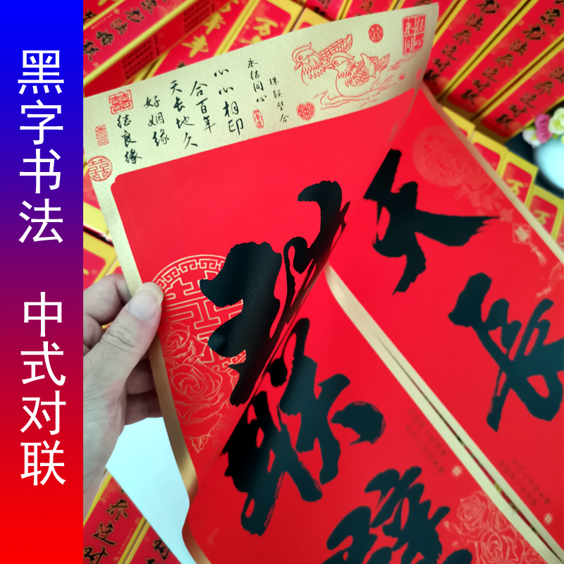 Marry a married woman Chinese wedding gate couplet rural hall villa gate couplet black calligraphy wedding couplet boxed