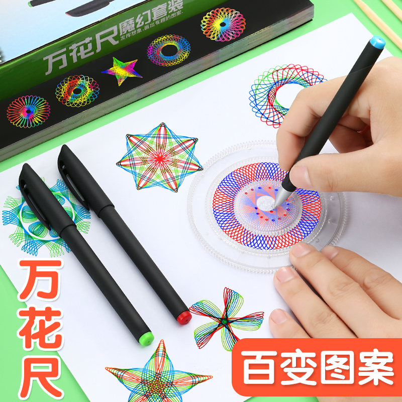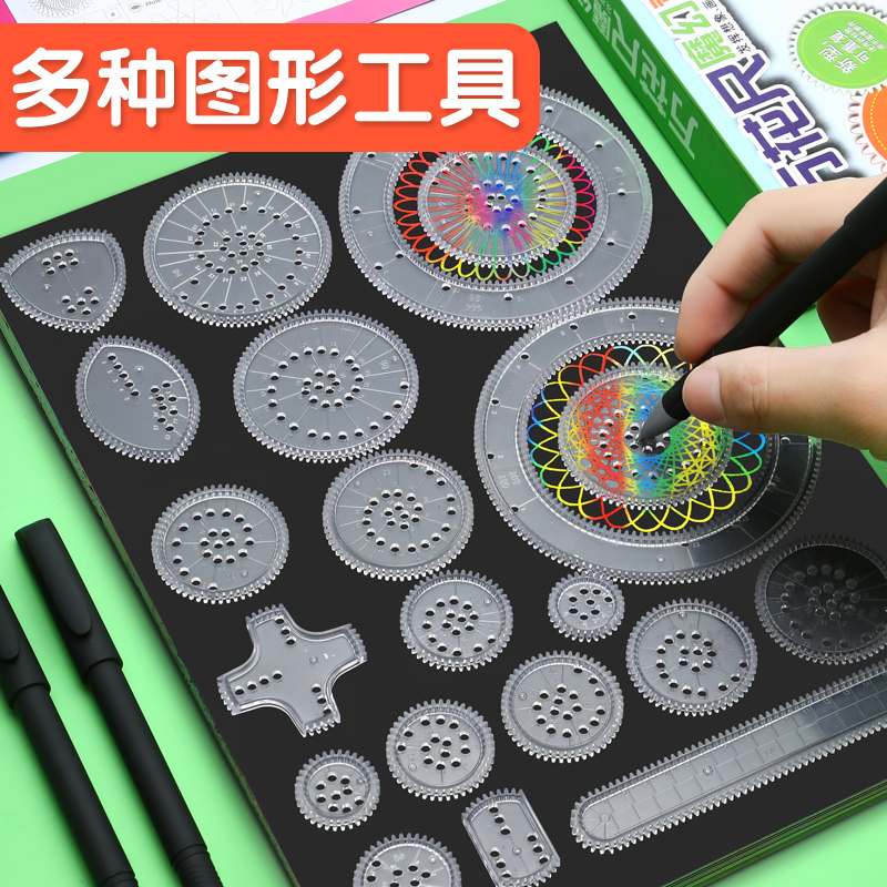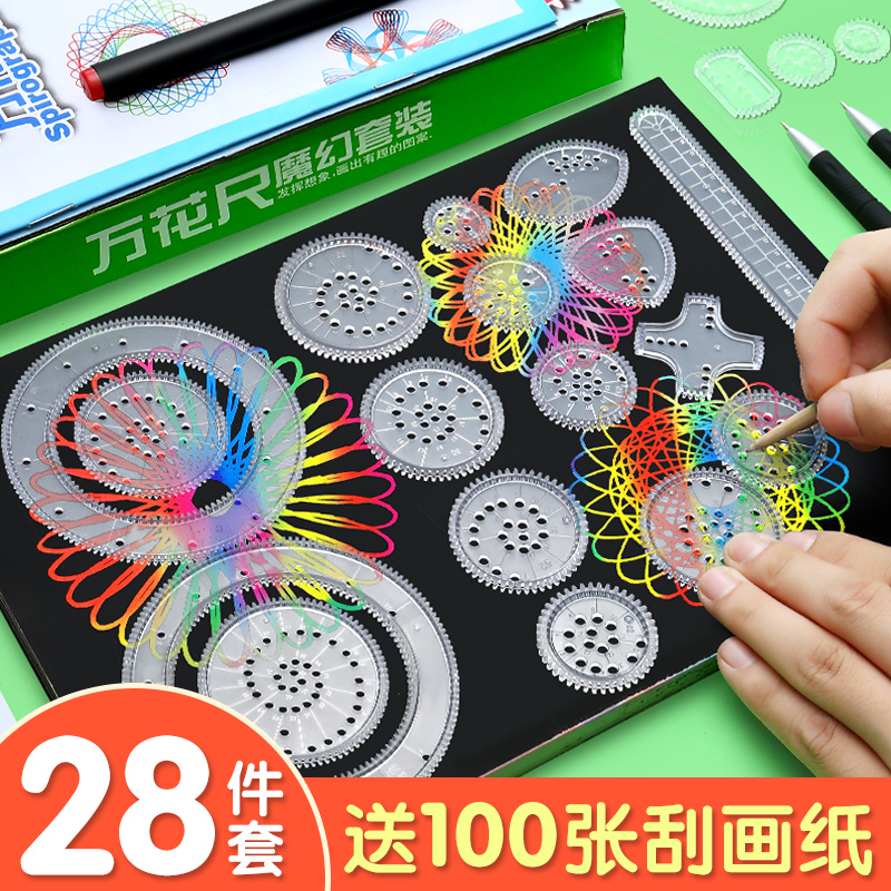 Puzzle 100 Puzzle Magic Hallucinoids 28 pieces of suit Flowering Curve Gauge Ruler Children Elementary School Children Elementary School Children Pictorial Drawing Drawing Drawing Creative Versatile Stationery Hollowed-out Drawing Hand Scribe template