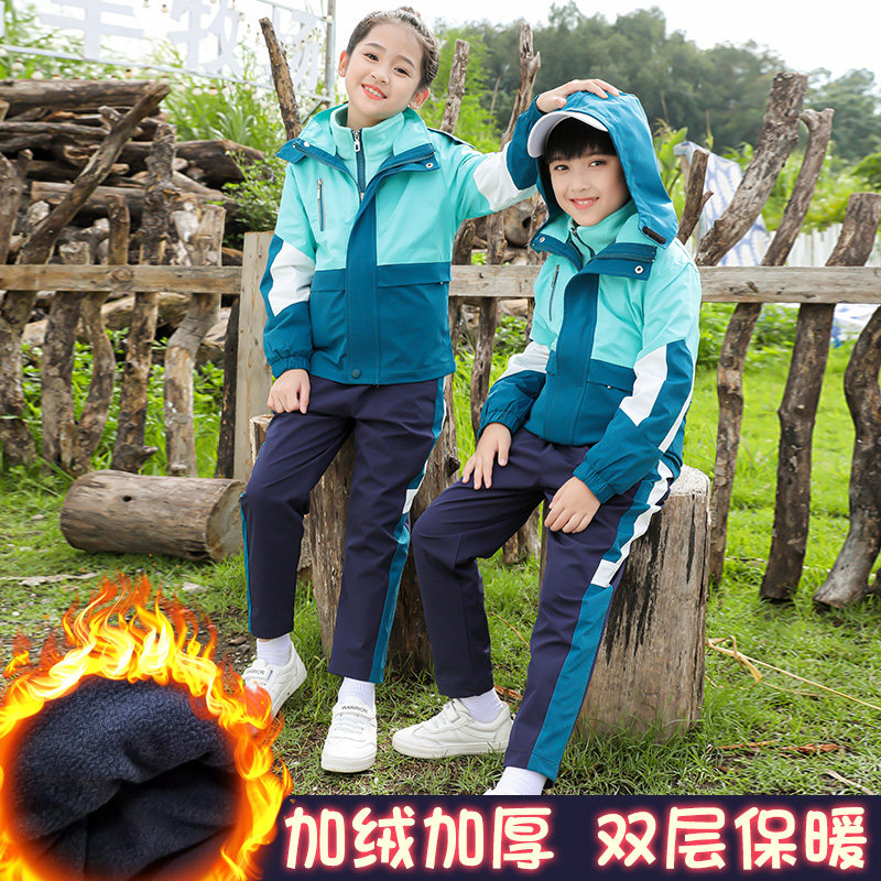 Primary school uniforms autumn and winter jackets winter children's class clothes kindergarten clothes plus velvet thick three-piece suit