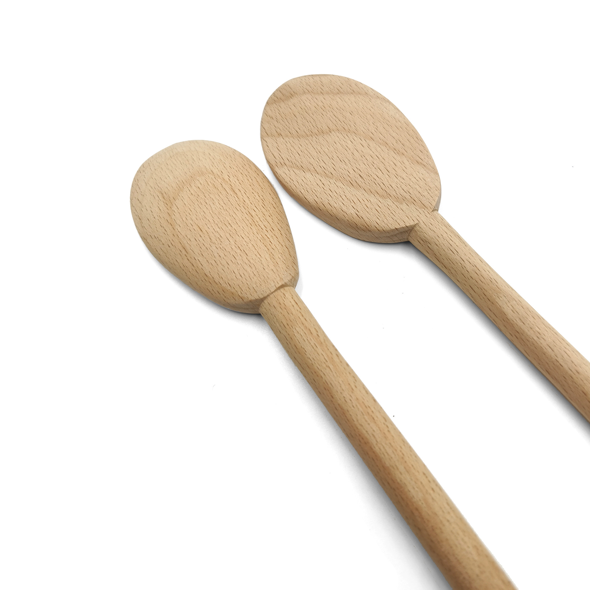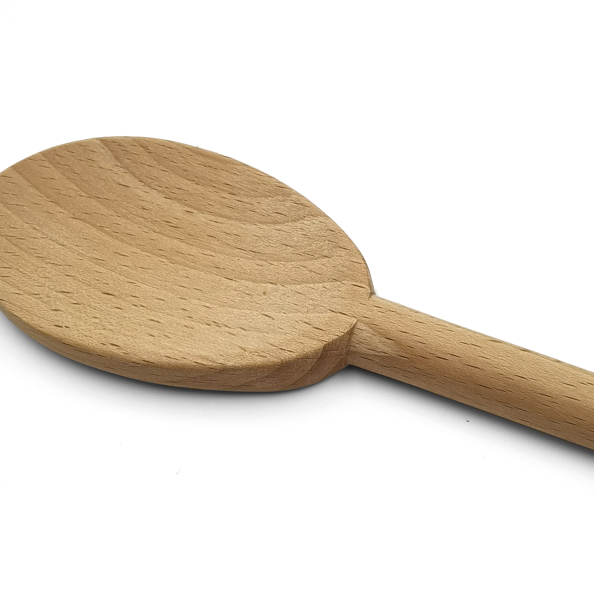 Fan-style stirring wood spoon imported beech wood cuisine without lacquer baked and cooked long pan spoon handmade oval spoon lengthened 40cm
