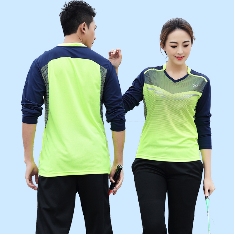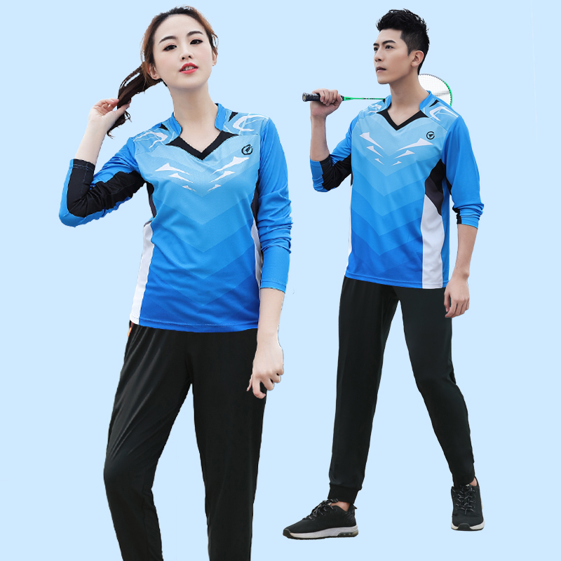 Long-sleeved badminton suit women's quick-drying top men's autumn and winter suit match sports volleyball table tennis training suit customization