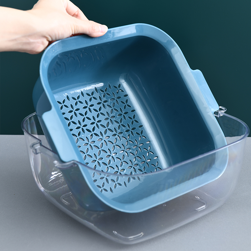 Double drain basket Household net red fruit plate Kitchen washing basin Living room plastic amoy basket storage basket
