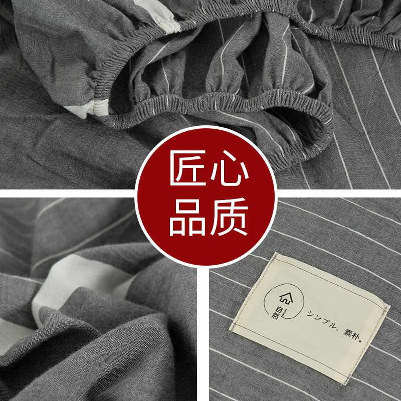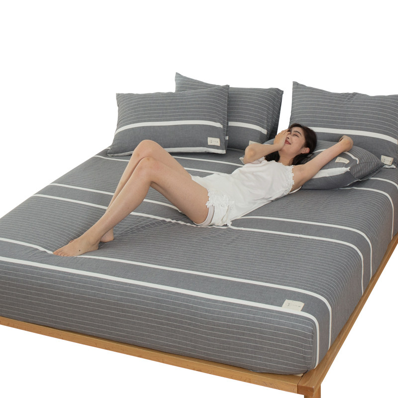 100% cotton washed cotton fitted sheet One piece cotton non-slip fixed one meter eight bedspread mattress cover Lattice height 1 8mm
