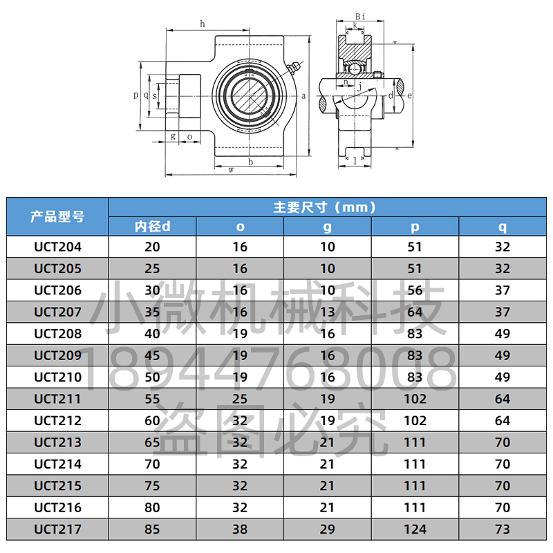 UCT204 (Inner diameter 20mm) UCT205(Inner diameter 25mm) UCT206(Inner diameter 30mm) UCT207(Inner diameter 35mm) UCT2