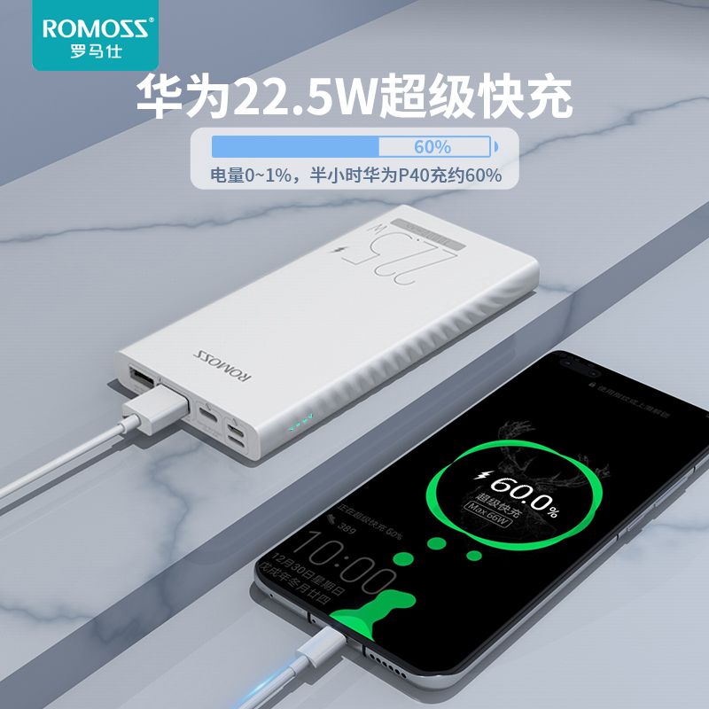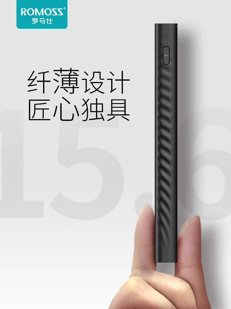 ROMOSS ROMAS Charging Treasure Ultra-Thin Compact Portable 10,000 mAh Two-Way Fast Charging Thin 10,000 Power Bank is suitable for Xiaomi viv Huawei oppo Apple 13 mobile phone