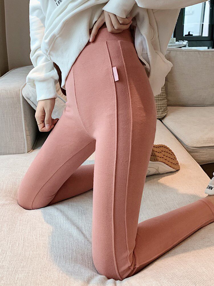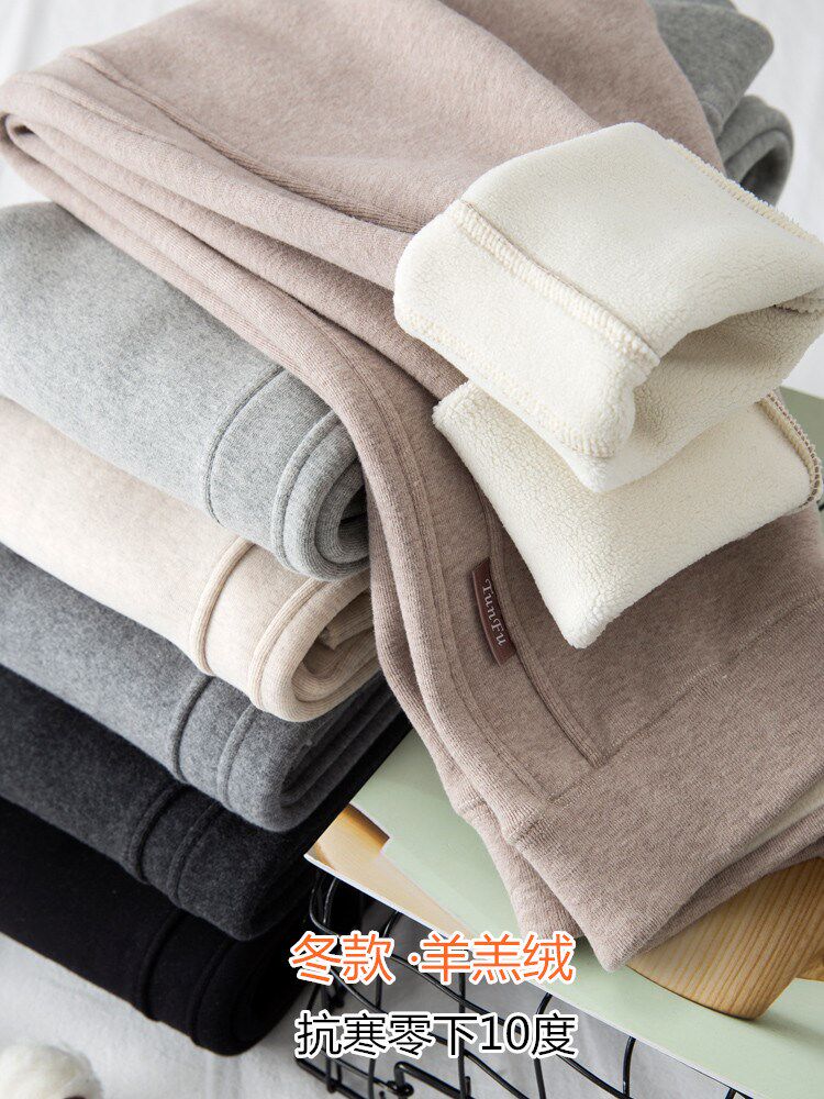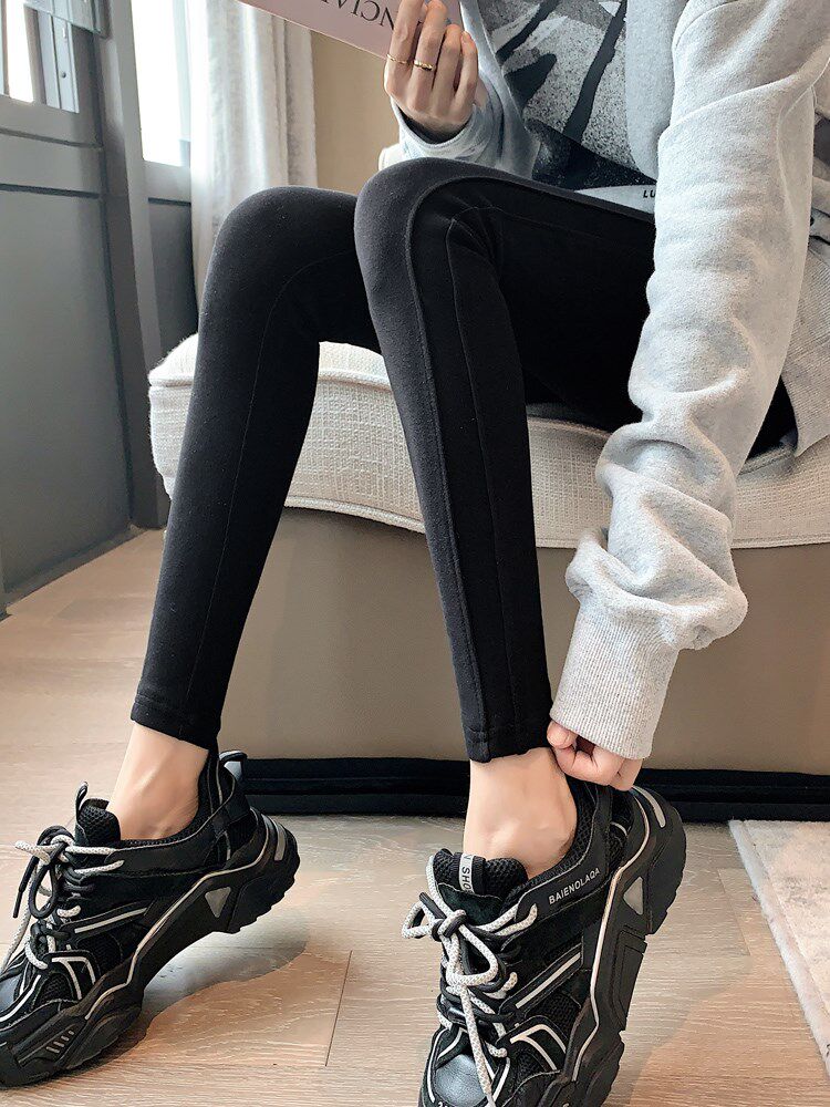Gush inner lap pants woman 2021 Winter new thickened outside wearing black High waist display slim stretch warm and small foot long pants