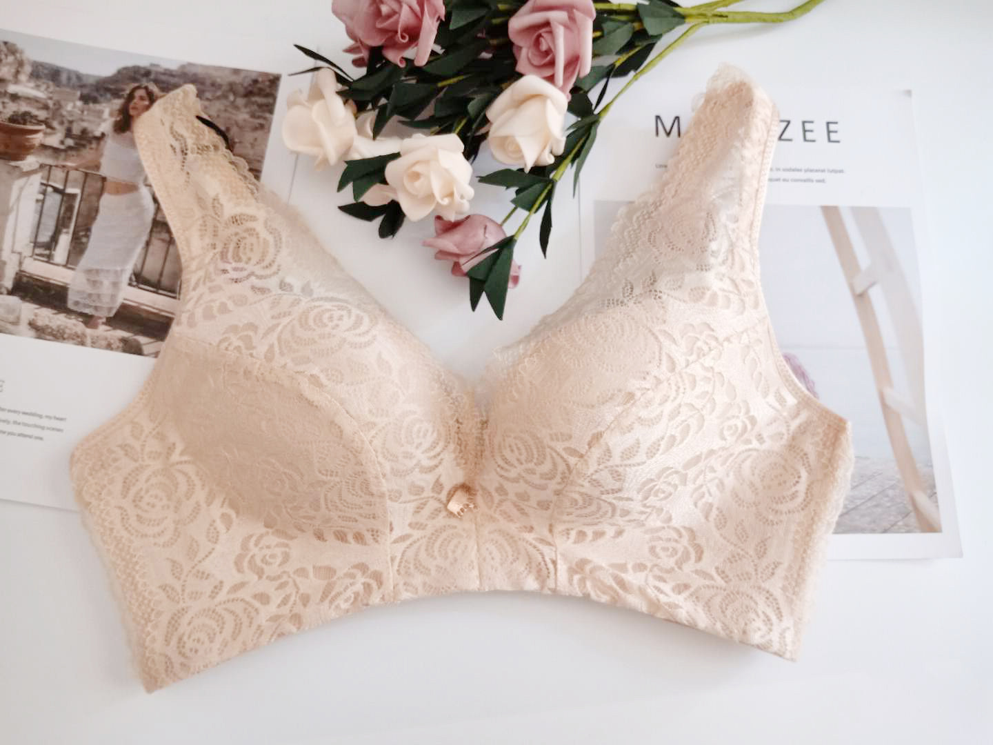 Ai Pian Jini's new gathered full cup V-shaped sexy lace thin section big breasts show small underwear anti-sagging bra