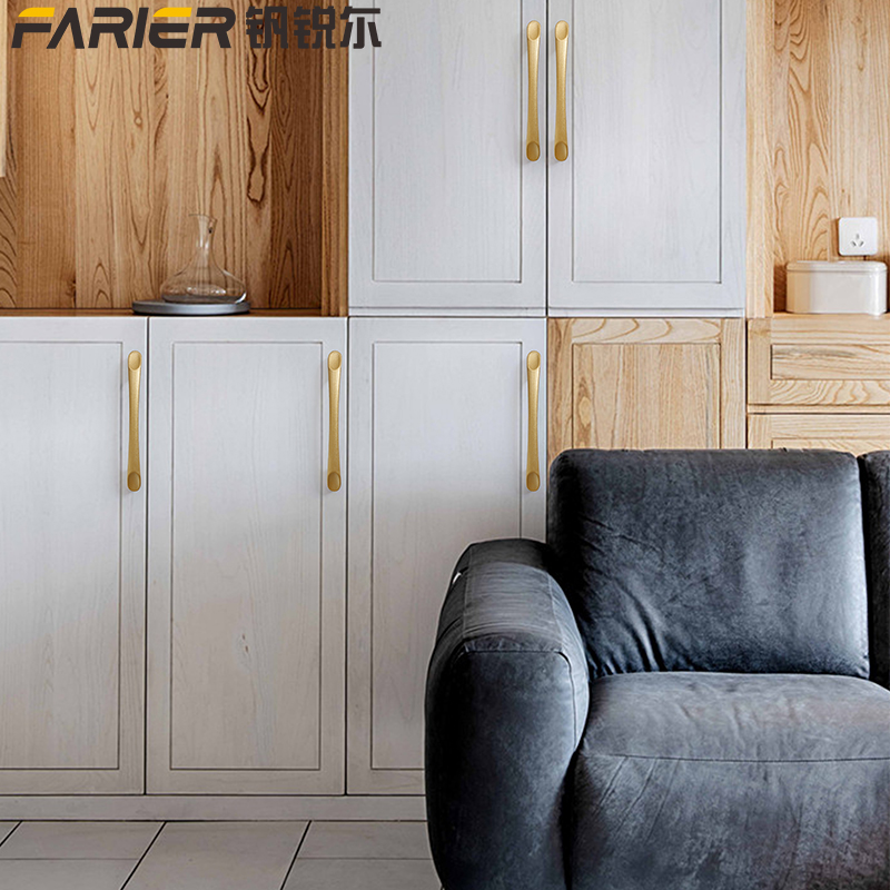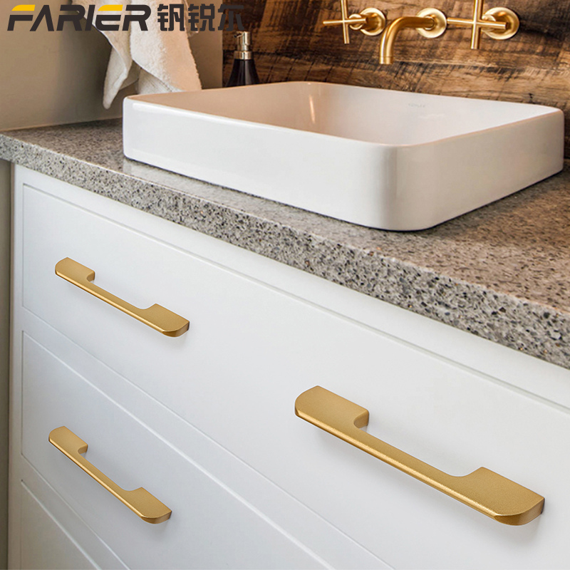 Minimalist solid native luxury gold sarkin gold color cabinet door wardrobe whole cabinet drawers furniture hardware aluminum alloy handle handle