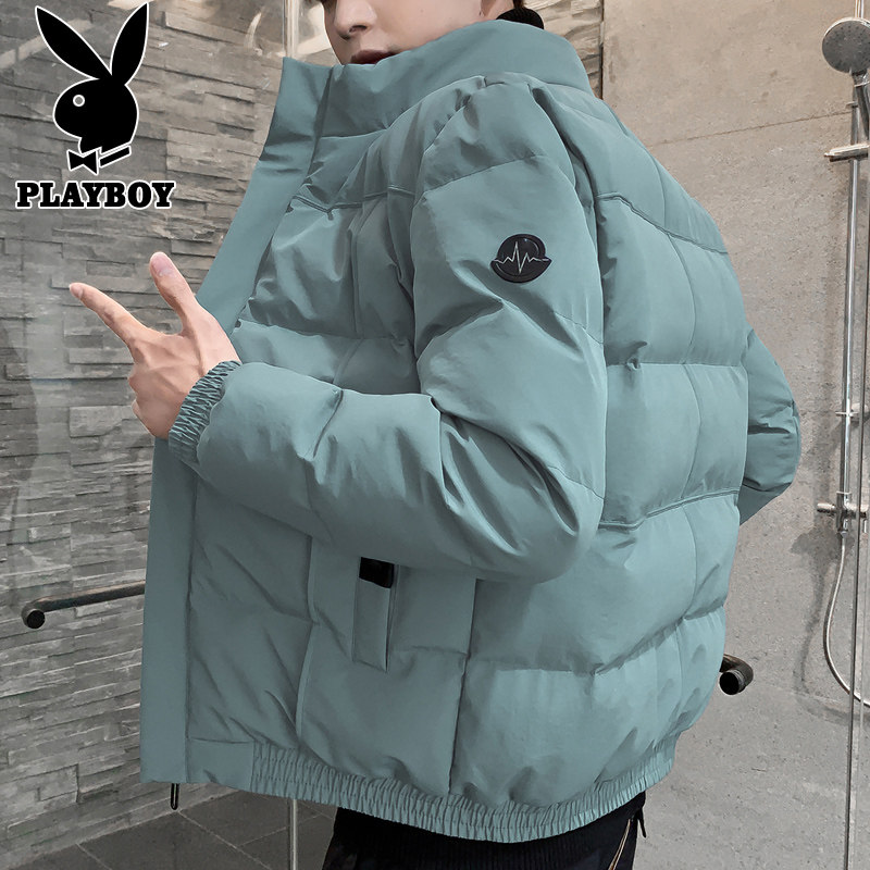 Flower Playboy Winter down cotton clothes Men's overalls Wear Tide Thicken short version Cotton padded jacket Men's clothing