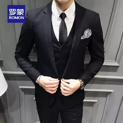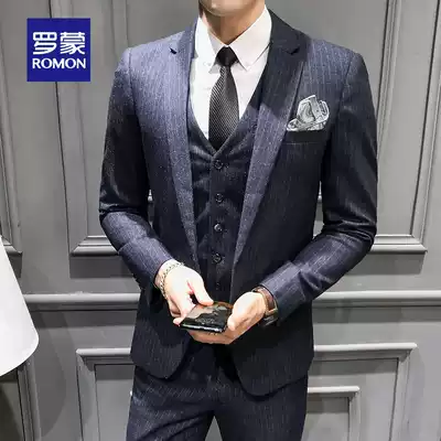 Luo Meng autumn winter suit suit suit men Korean version of slim stripe business casual dress groom wedding dress suit