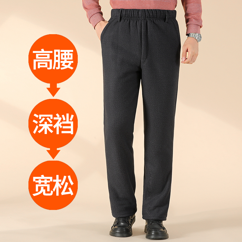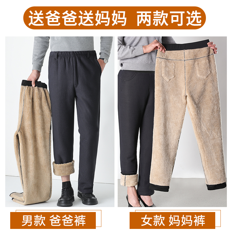 Dad Plus Suede Pants Men's Elderly Men Thicken Pants Mom Seniors External Wear Tightness Cotton Pants Winter Grandpa