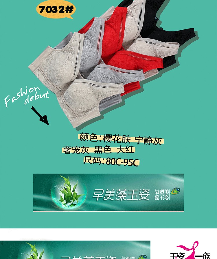 Jade gesture One group 7032 anti-walking light bra thin section C cup poly-woo side closeup overweight 95C bra spring and summer new