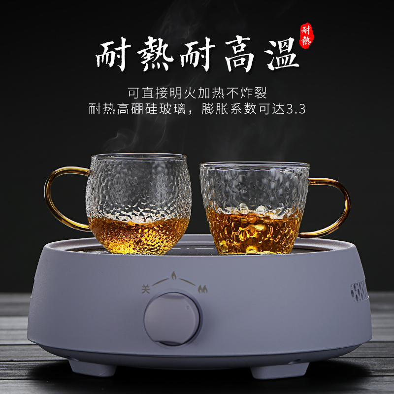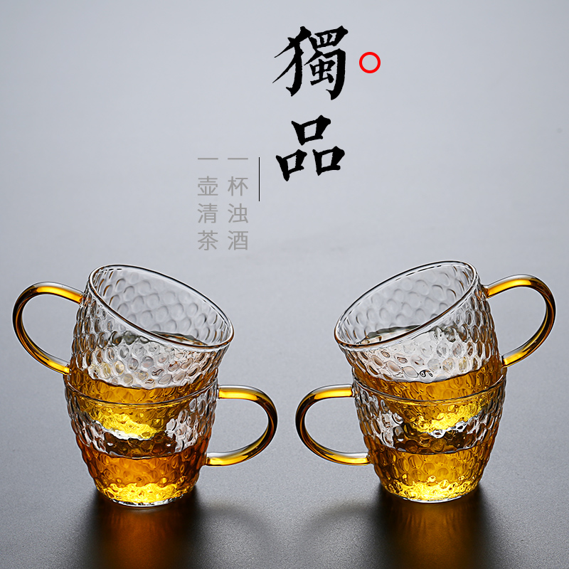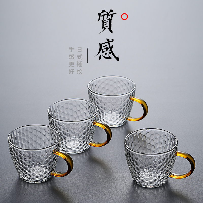 High temperature resistant glass small teacup with hammer mesh pattern Small Kung Fu tea cup Household personality small cup Master cup