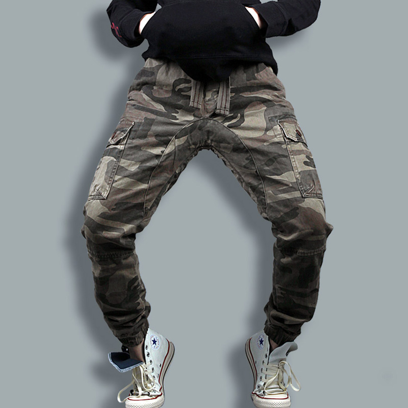 Spring tide brand outdoor drawstring camouflage pants men's loose slim multi-pocket overalls Elastic waist casual pants stretch