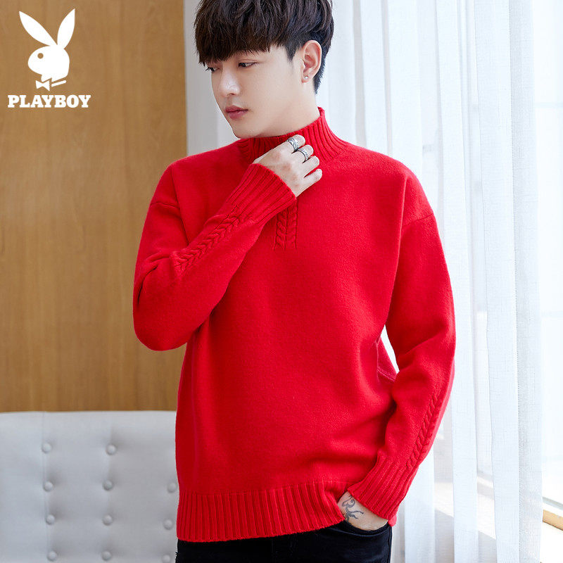 Playboy autumn sweater men's high-necked trendy loose spring and autumn sweater bottoming knitted sweater men's clothing