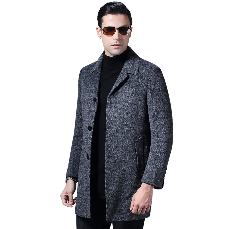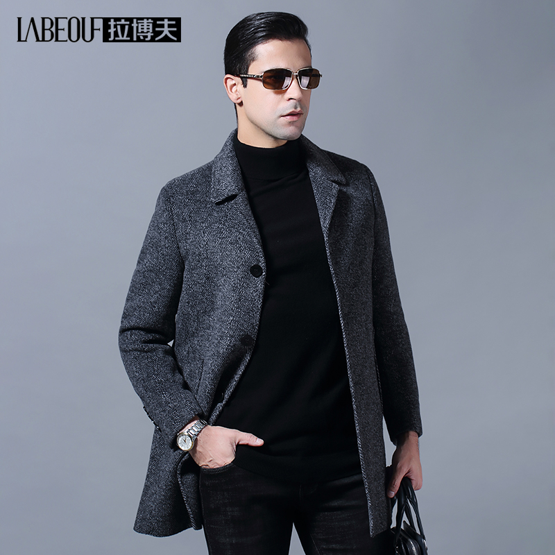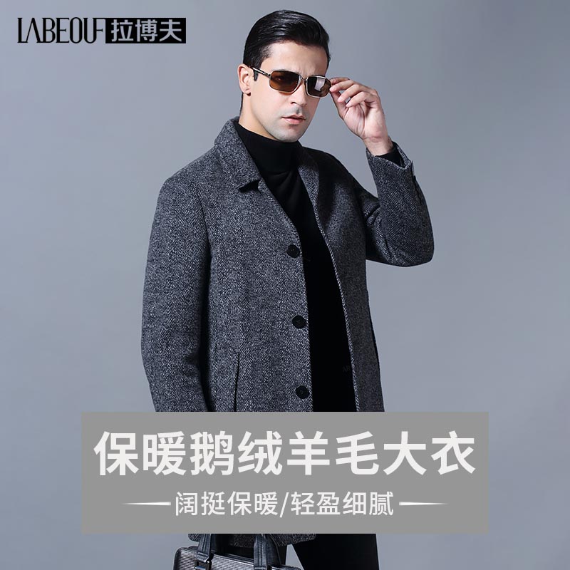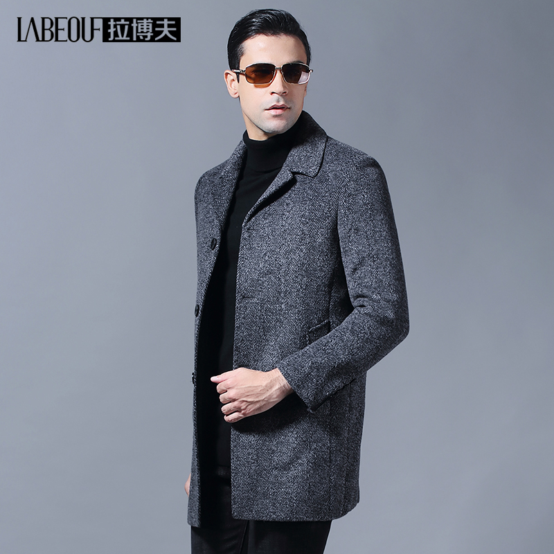 Labov Great Clothes Men's Middle Aged Wool business turquoise The long version of pure color is free of ironing no ball fall jacket