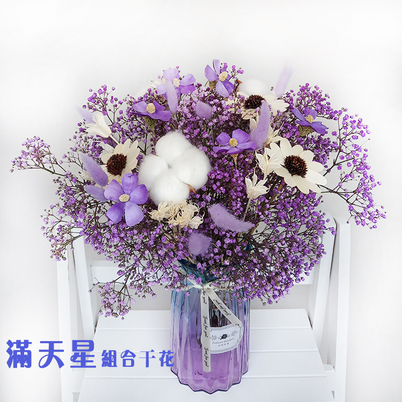 Full stars Violet cotton Yunnan dry flower bouquet flowers home decorated flowers
