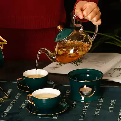 Nordic light luxury flower tea set Afternoon tea Household flower tea cup boiled fruit tea pot with filter candle heating