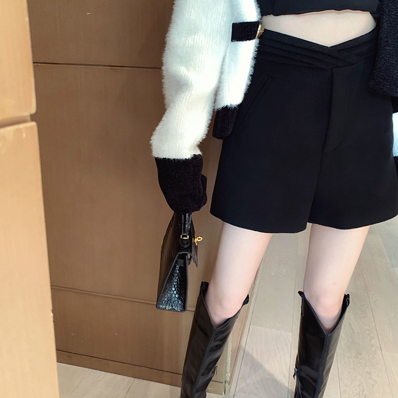 Shorts women's autumn wear 2021 black wool pants loose straight high waist slim Joker Martin boots pants tide