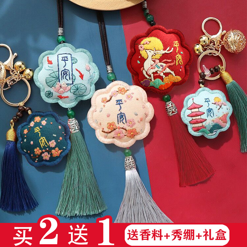 Handmade diy embroidery safety charm car pendant decoration couple sachet car interior rearview mirror pendant pendant