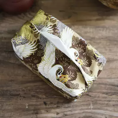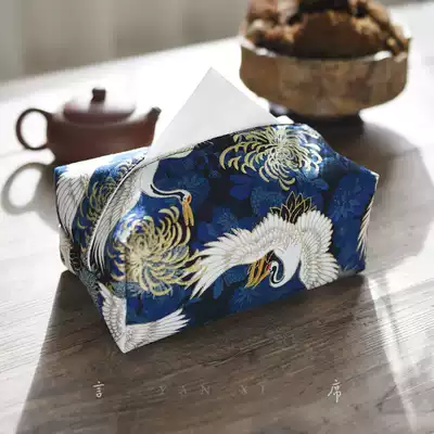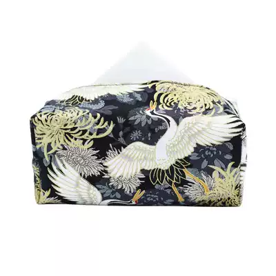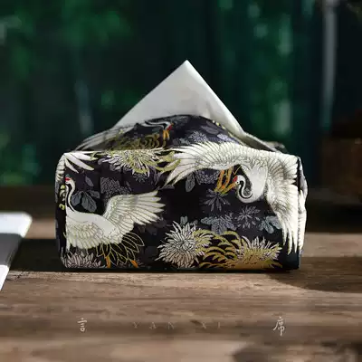 Hot stamping crane tissue box fabric high-end light luxury sanitary paper box Chinese tea room living room household paper towel bag