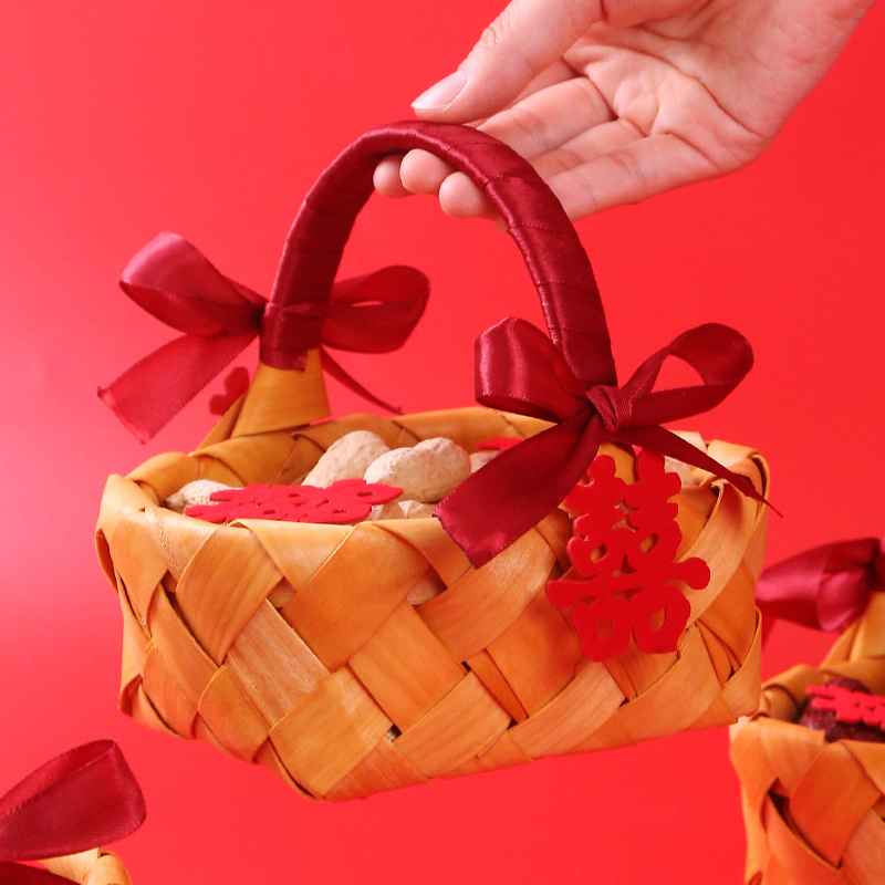 Early life and noble son creative basket decoration wedding room decoration pressure bed doll mold bamboo basket wedding supplies Daquan