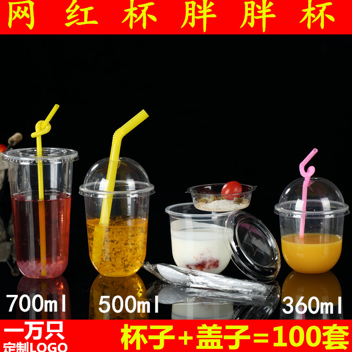 Sour Plum Soup Cup Disposable Burn Fairy Grass Ice Town Thickened Plastic with lid Home Milk Tea Transparent Shop With Plastic Cup