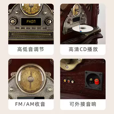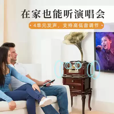 European style vinyl record player vintage retro phonograph antique big speaker bass solid wood home electronic record machine