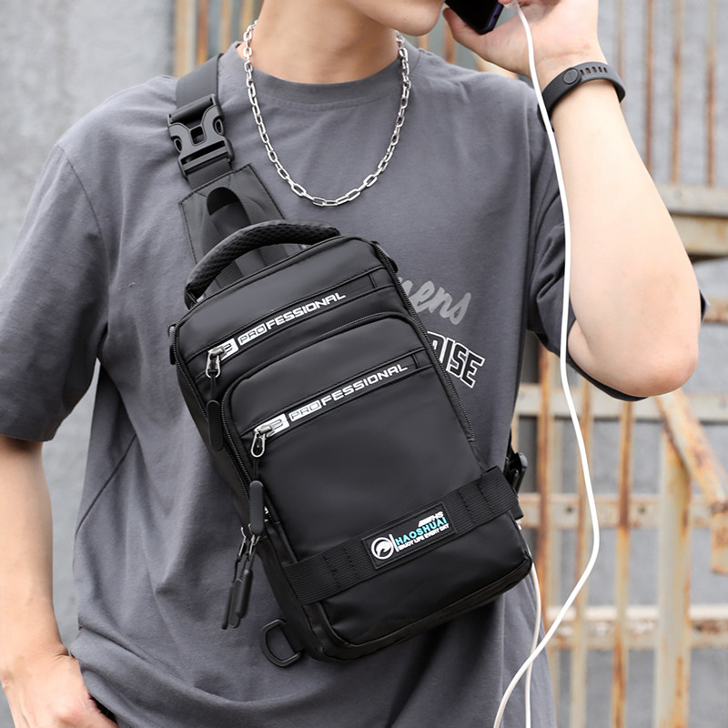 New Men's Chest Bag Tide Card Casual Multifunction Chest Front Single Shoulder Diagonal Satchel Light Fashion Double Shoulder Bag Large Capacity